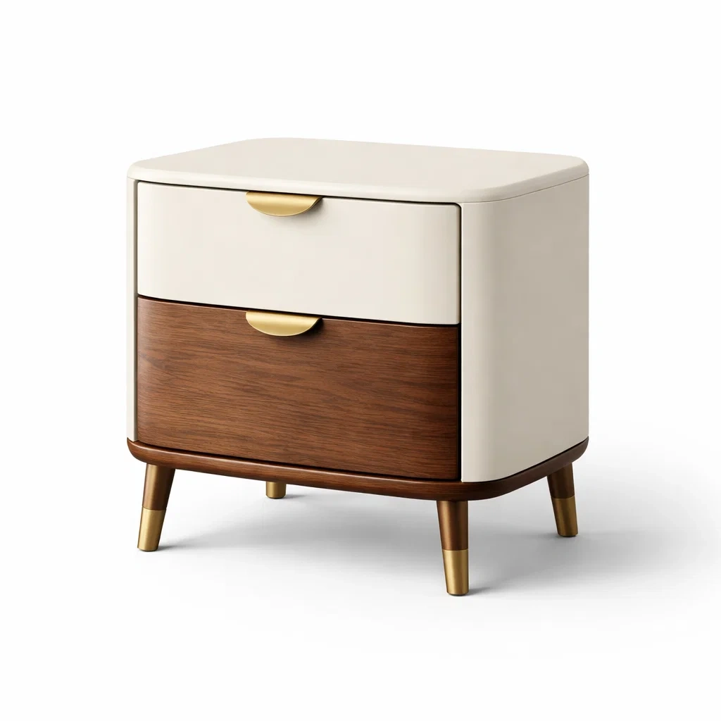 Table de chevet en Bois et Métal avec Finition Crème et Noyer